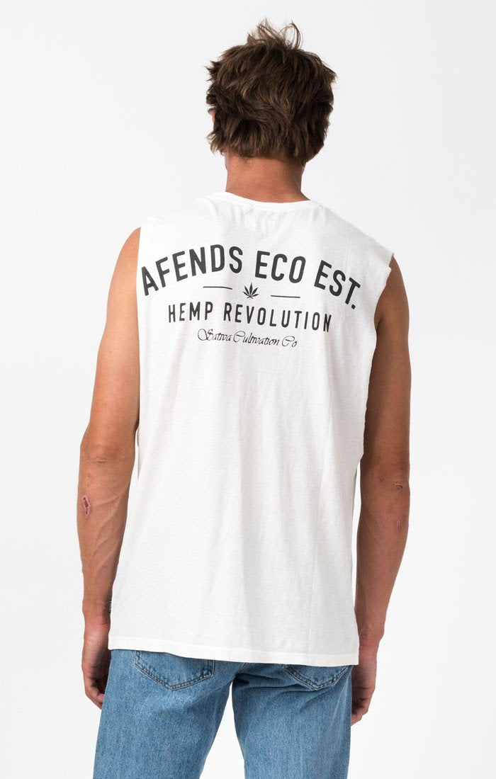 The Afends Hemp Bandcut is a tailored cut with ripped off sleeves and a narrow cotton rib collar band, just like our standard fit tee, with no sleeves.