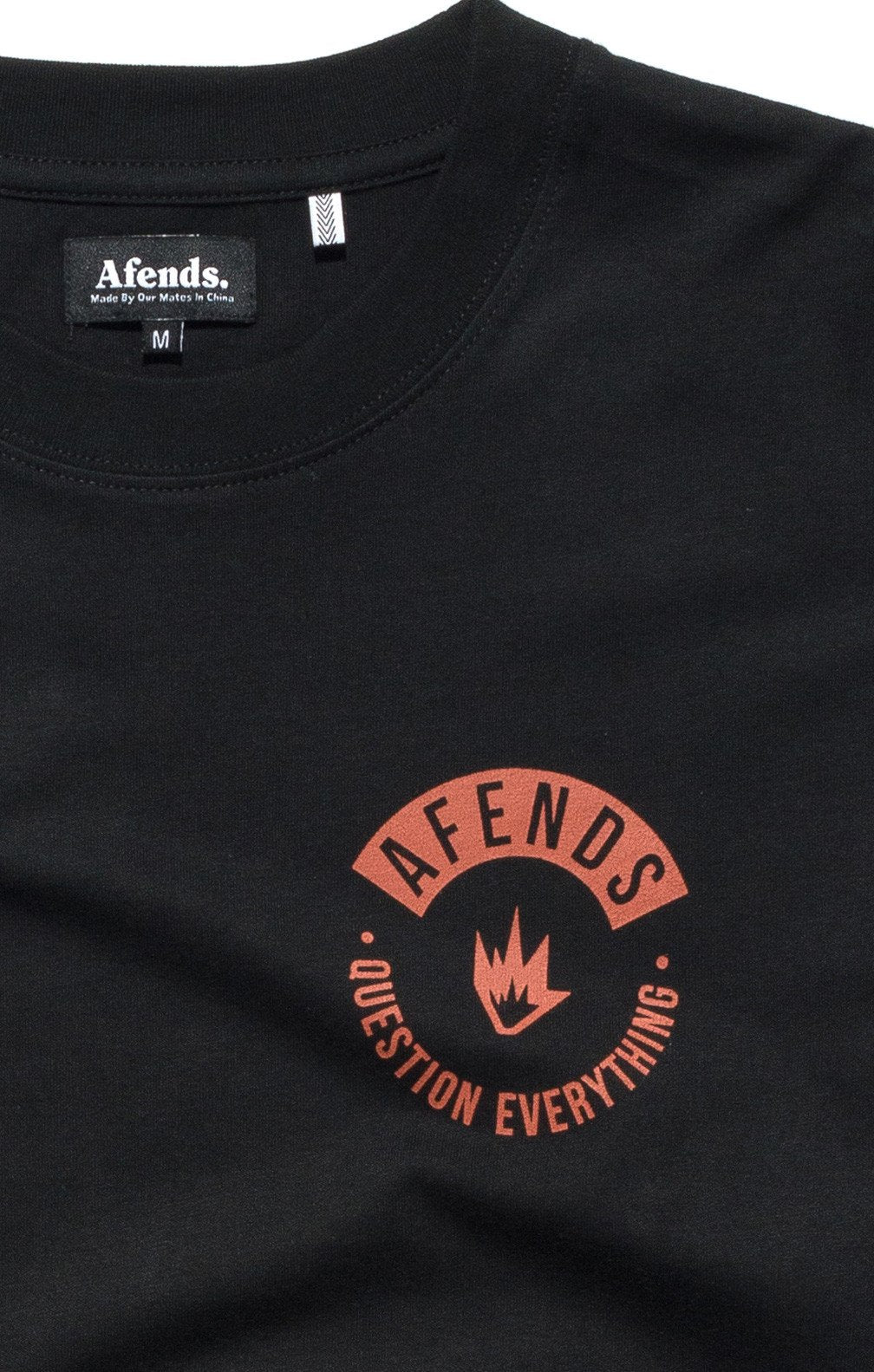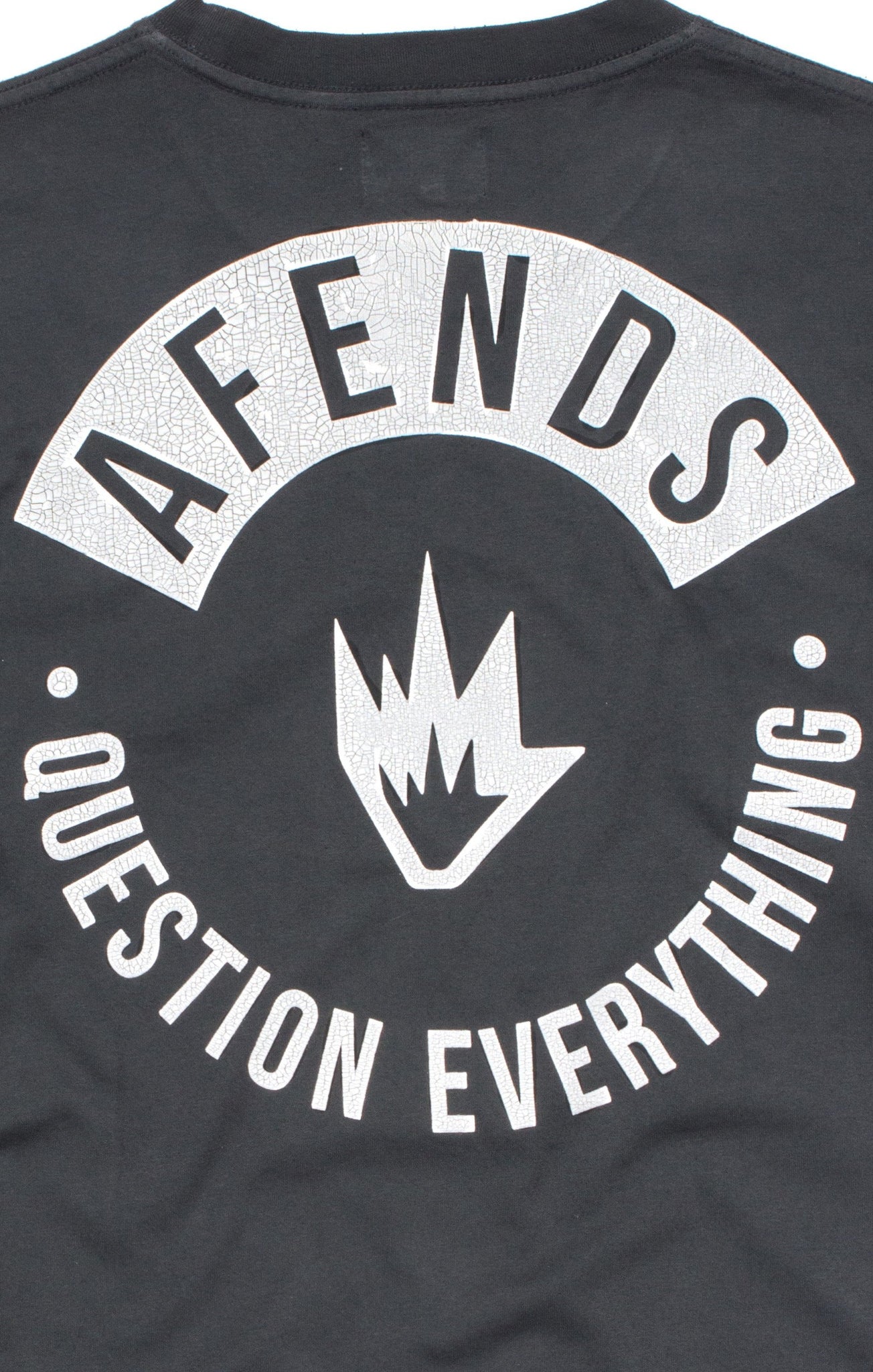 - Afends Question Everything Circular Logo Crackle Print on Front Left Chest & Centre Back
