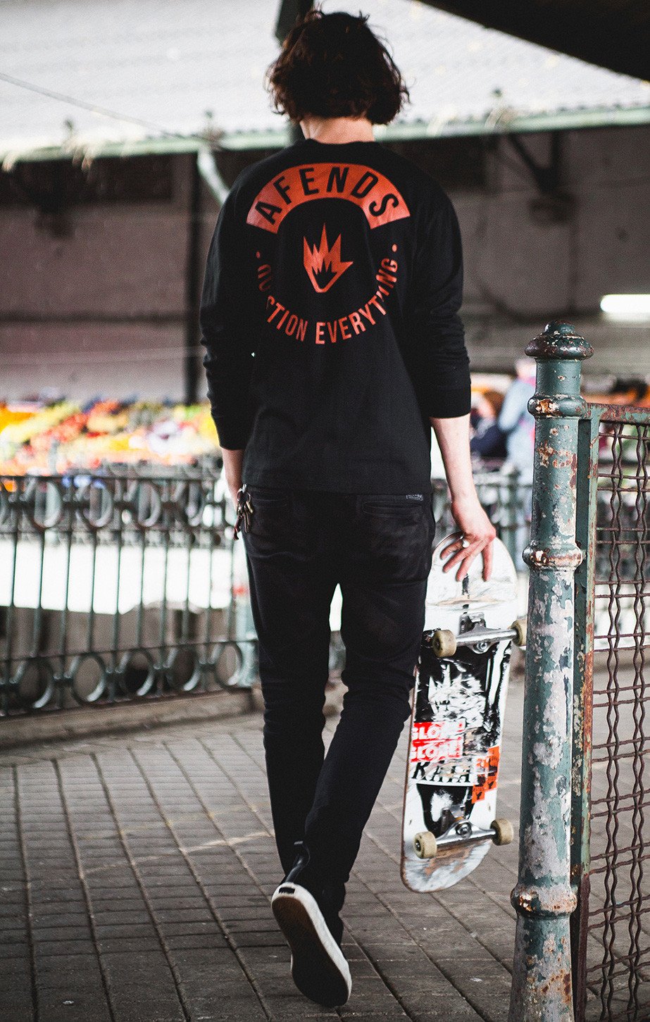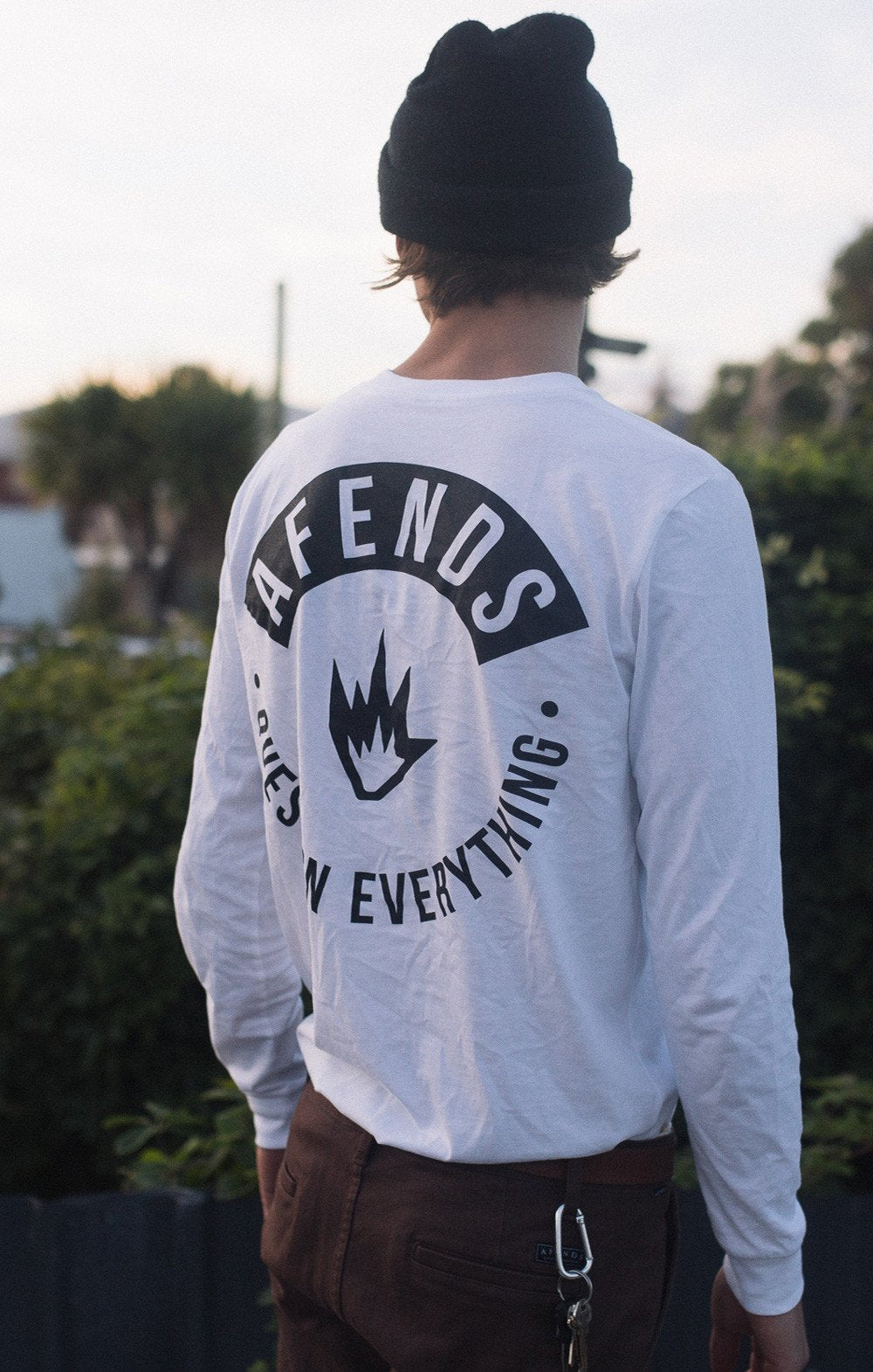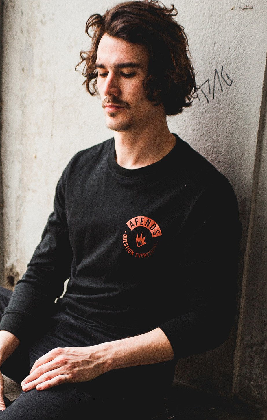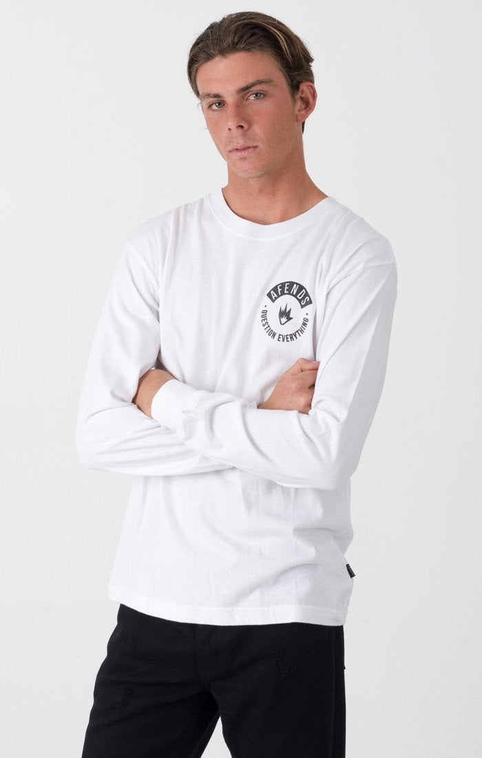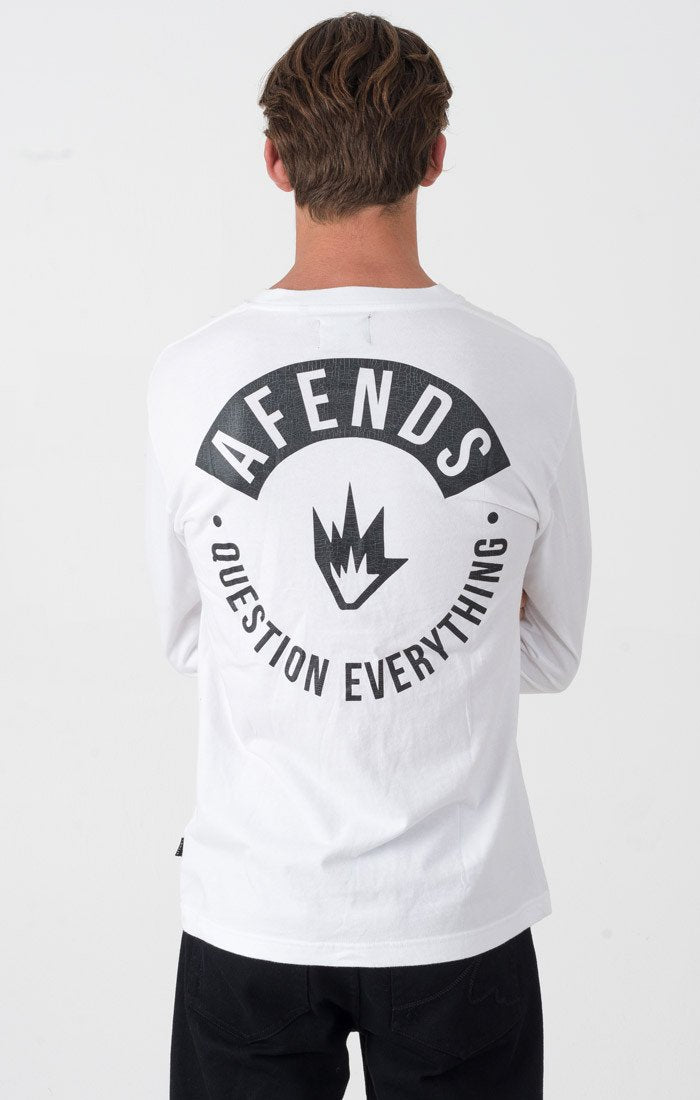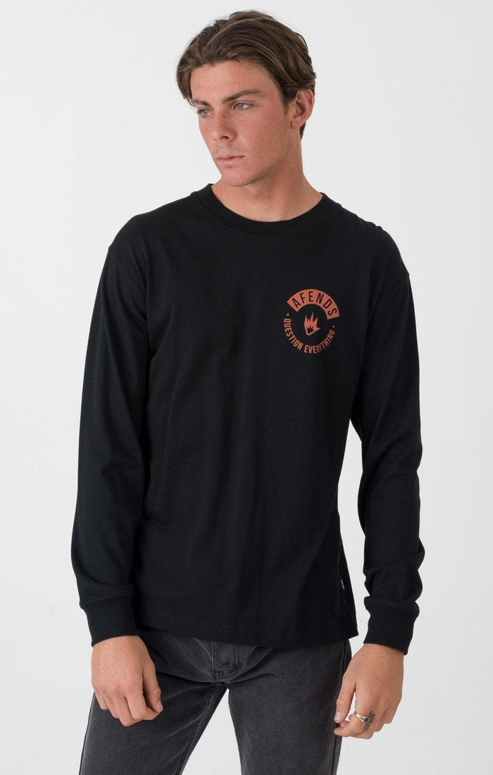 Cut to our classic long sleeve fit, this tee features a contrasting circular Afends Question Everything logo, crackle printed small on the front left chest, and large as a centre back piece.