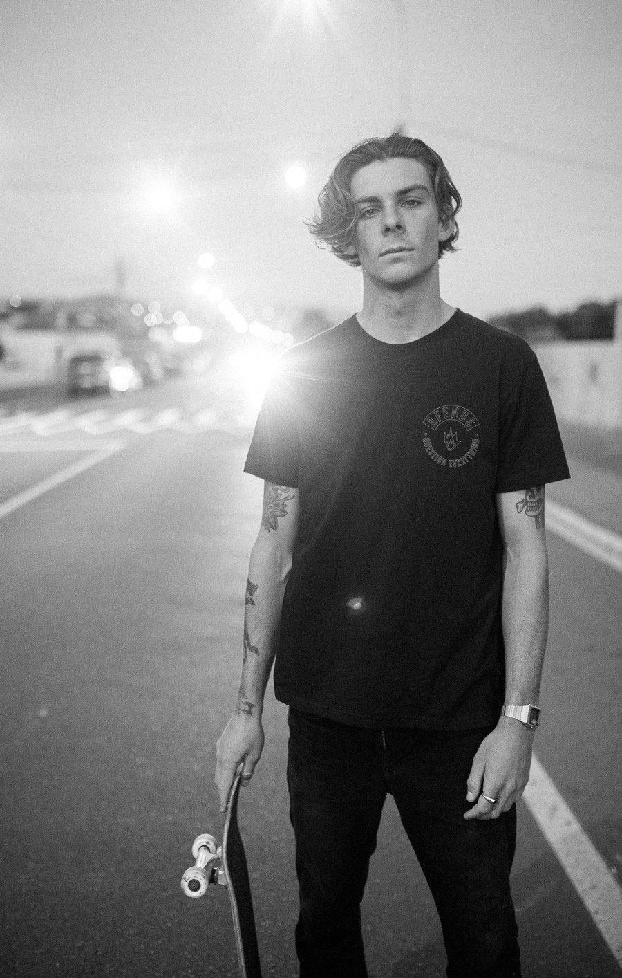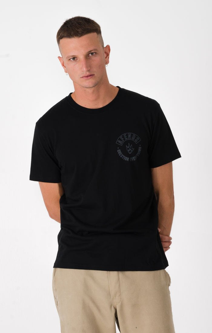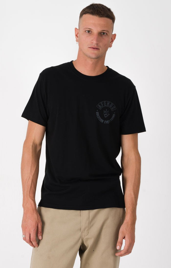 The Afends 'Standard Fit Tee' is a tailored cut with fitted sleeve and narrow cotton rib collar band.